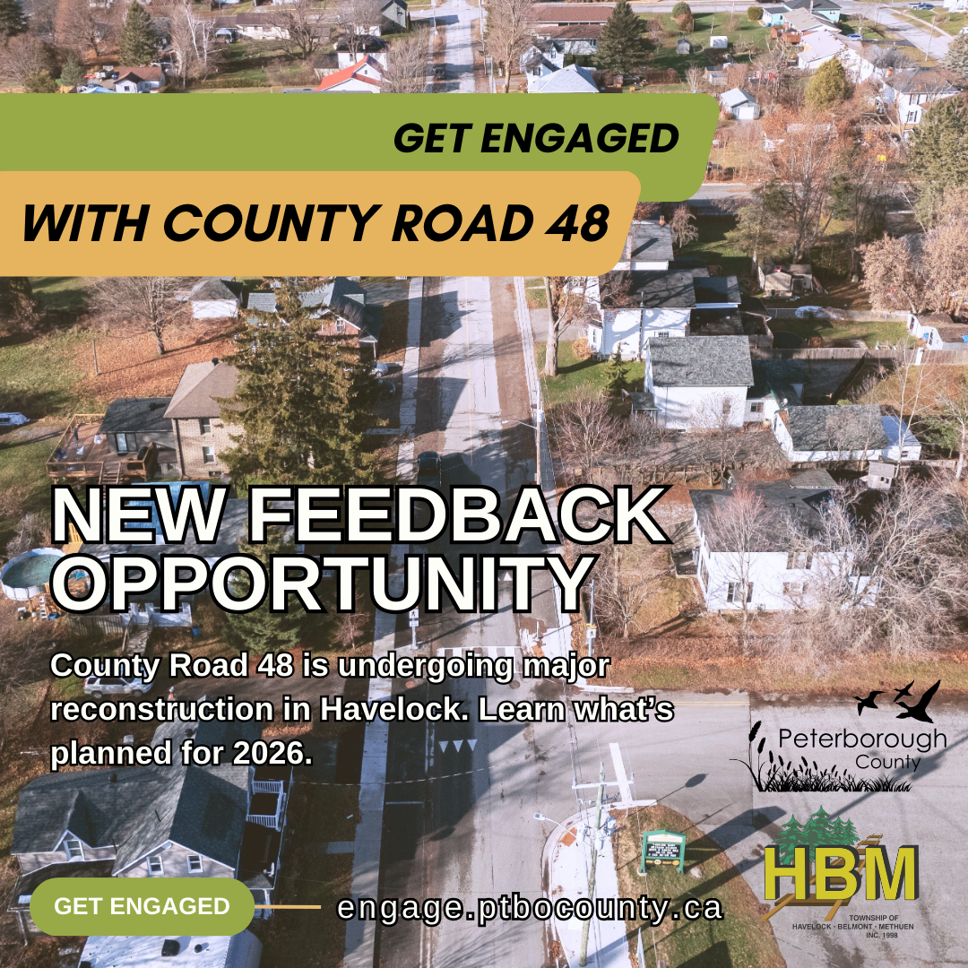 County Road 48 Road Reconstruction – Public Information Centre (PIC) Follow-up Thank you to those who attended the PIC on March 3, 2026. The display boards shared during the session are available for your review here: PIC Display Boards. Register to stay informed on project updates at: County Road 48 (Ontario Street/Quebec Street/George Street W/George Street E) - Road Reconstruction | Peterborough County ON. We encourage you to submit any questions or comments about the upcoming construction work by completing the survey here: https://engage.ptbocounty.ca/cr48/surveys/public-information-centre-march-3-2026. We will be accepting questions and comments until March 17, 2026. |