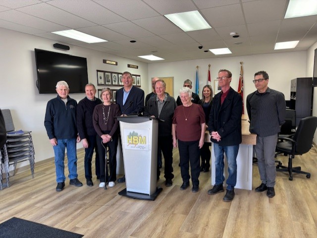 Pictured is Dave Smith, Peterborough-Kawartha MPP along with HBM Council and staff members following the announcement.