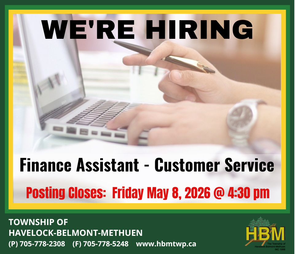 The Township of Havelock-Belmont-Methuen is currently seeking a motivated individual to fill the position of Finance Assistant-Customer Service.