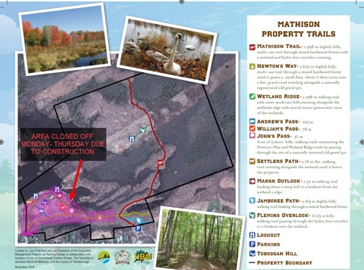 Due to Hydro One Transmission Refurbishment Project the entrance to Mathison Trail on Newton Avenue will be closed Monday to Thursday and will reopen Thursday April 23, 2026, in the evening.
