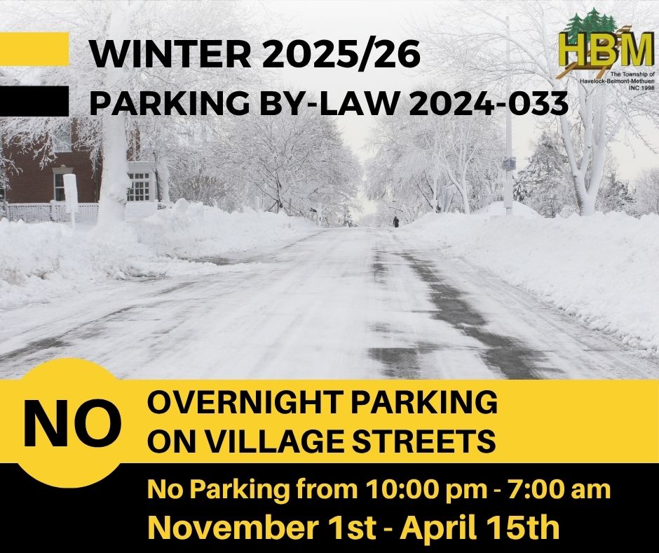 Reminder to residents and visitors of the Village of Havelock, as of November 1st until April 15th, there is NO overnight parking on village streets. This ensures the village streets are clear should winter maintenance be required.