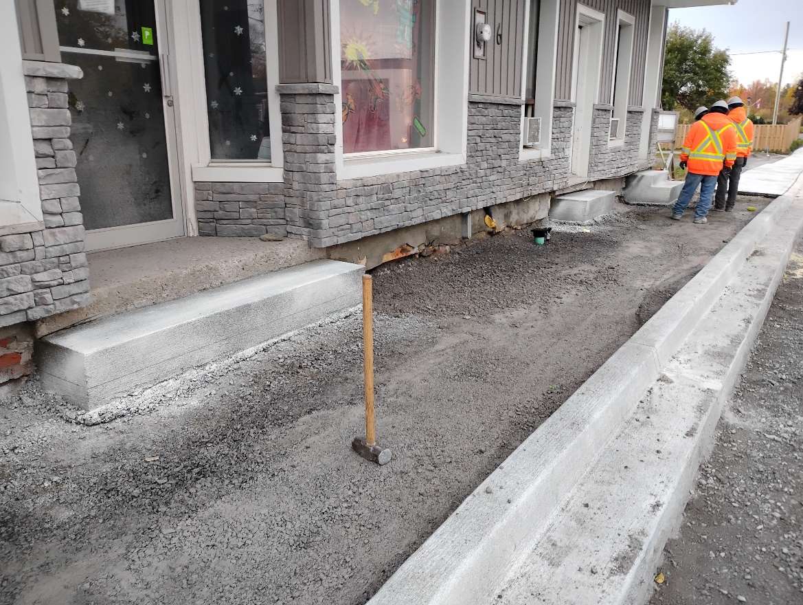 Several concrete steps required removal and new concrete steps have been poured. As the crew complete the sidewalk pour, QBT are busy preparing for asphalt.