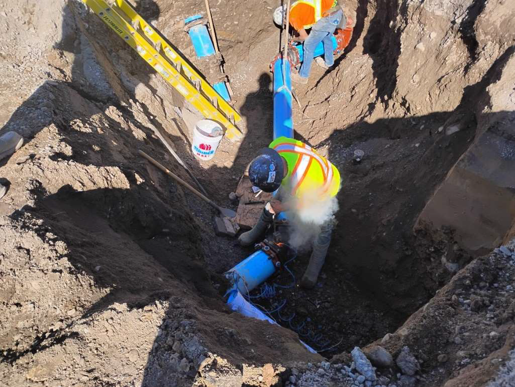 There we have it everyone, the final watermain connection to the existing. This now finishes the underground work, including the storm and sanitary sewers.