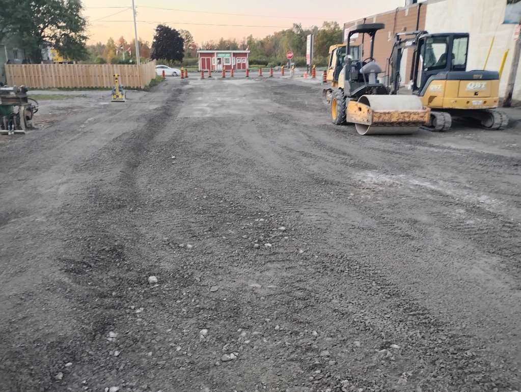 Work will now proceed to the completion of the road granulars, and preparation for the concrete curb and gutter as well as the sidewalks. Excess materials will be cleaned up as well.